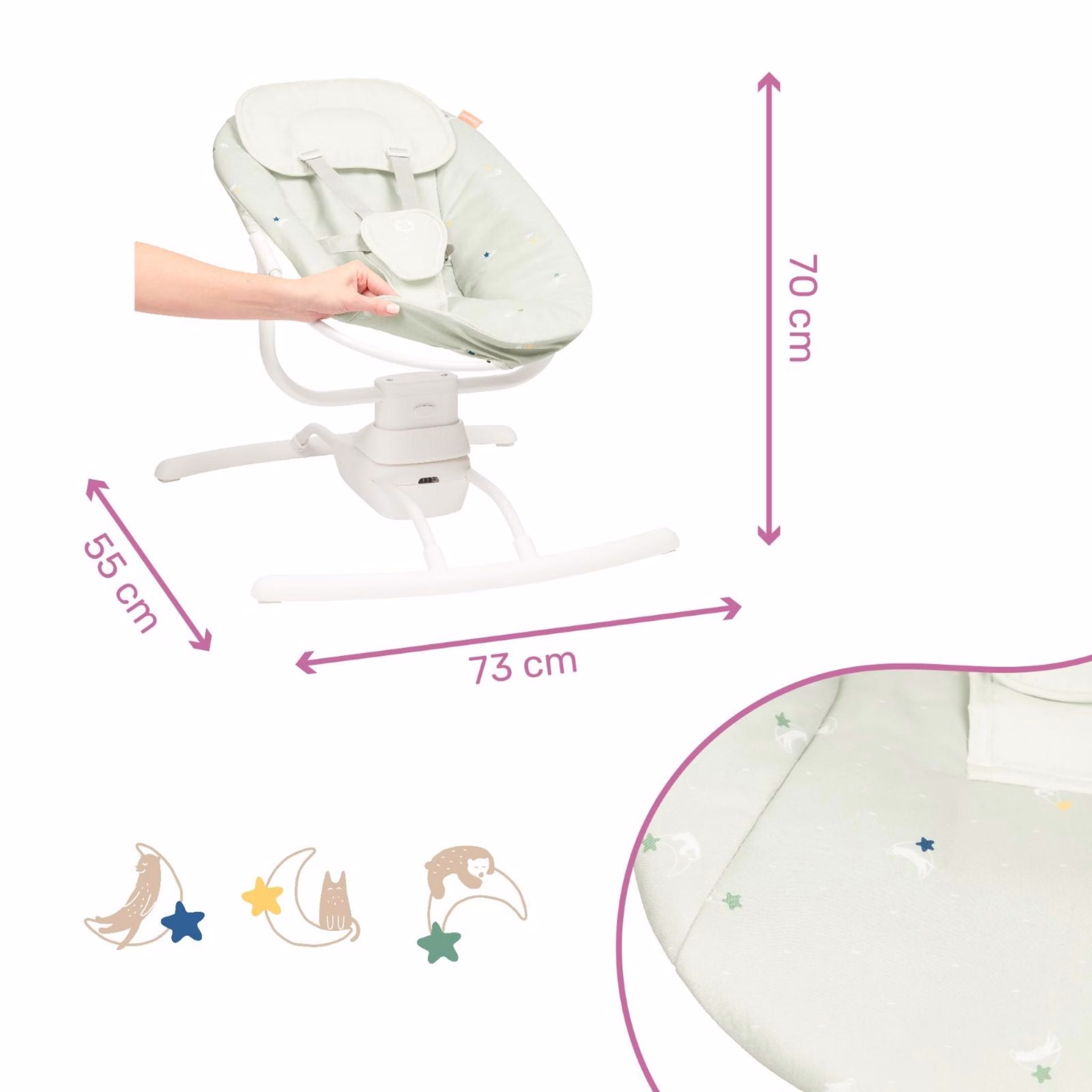 – Balancelle motorisée : reproduit le mouvement naturel des bras des parents