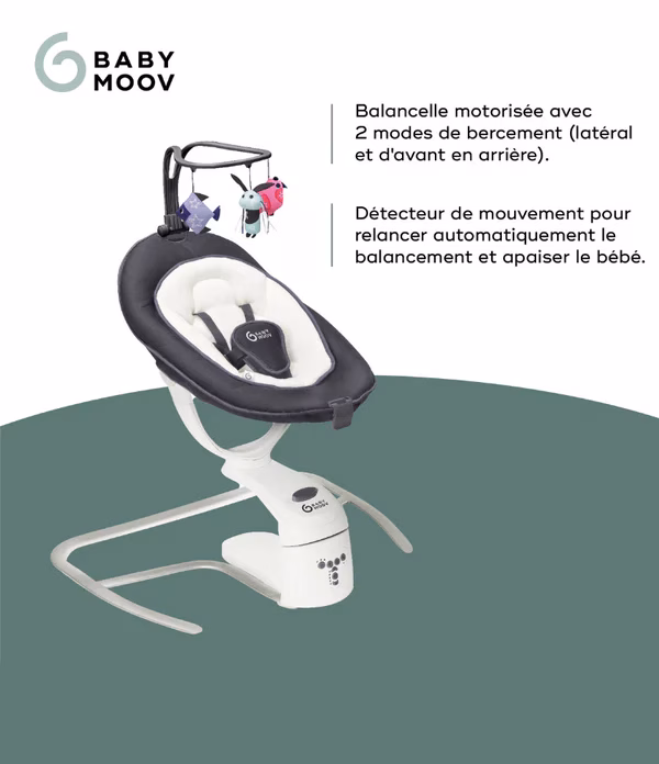 - Détecteur de mouvement : le balancement se déclenche si le bébé bouge