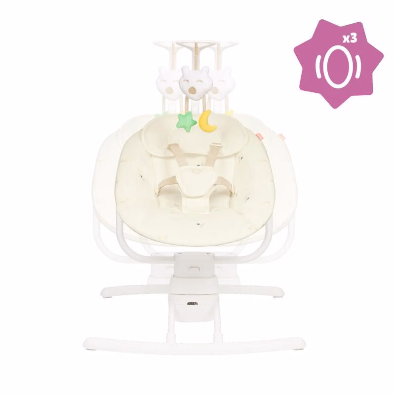 – Plus besoin de toujours garder un bras libre pour porter bébé, cette balancelle reproduit le mouvement apaisant des bras des parents, avec 3 vitesses de balancement latéral.