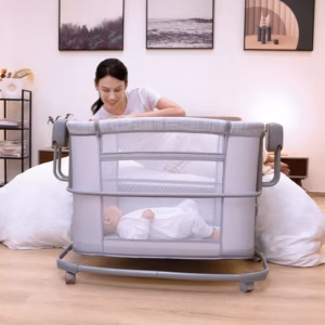 Grâce à sa barrière latérale abaissable, le berceau peut être utilisé en cododo, vous permettant de garder bébé à portée de main tout en restant en sécurité.